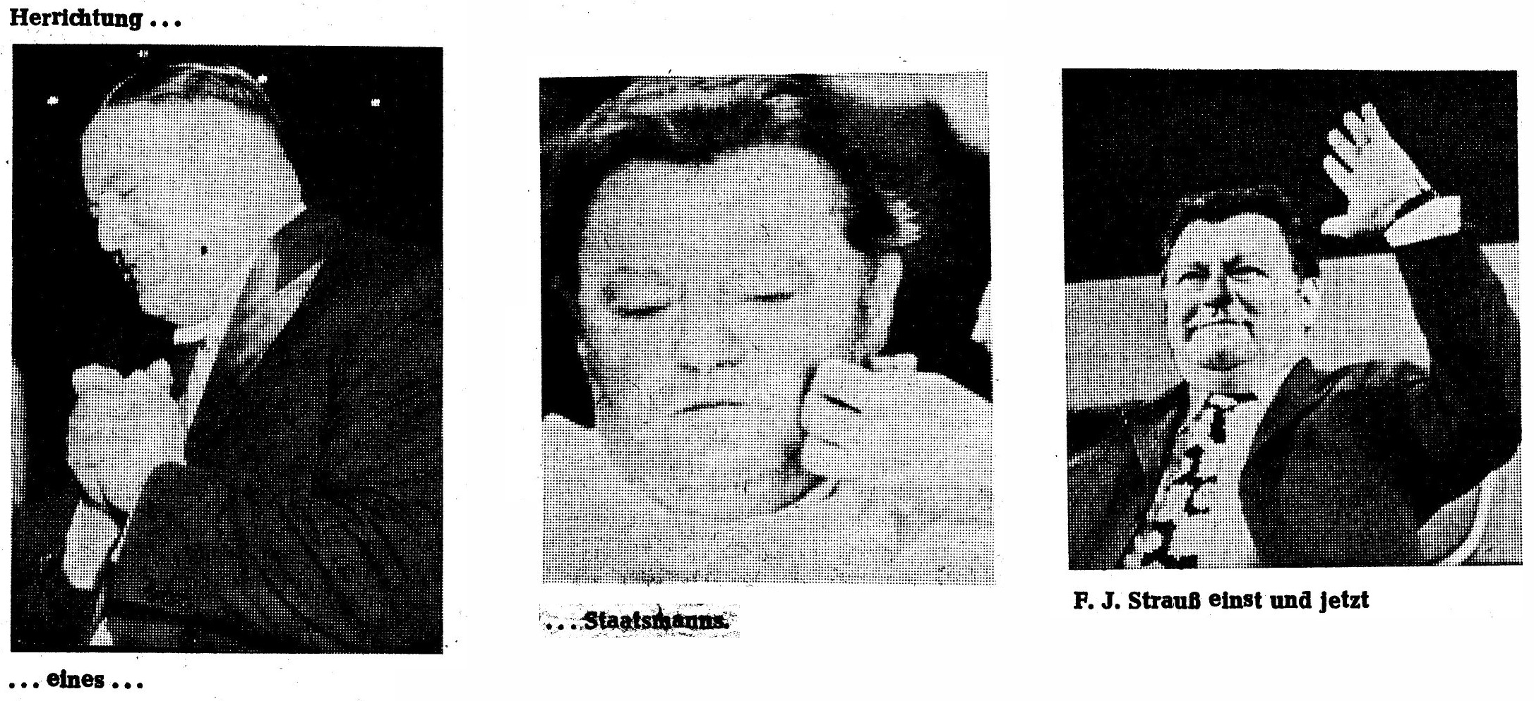 „Zu seiner Bonner Unerfahrenheit paßt auch, daß Kohl von Wirtschafts- und Finanzpolitik ebensowenig versteht wie von den auswärtigen Angelegenheiten – den auch nach Meinung der CDU/CSU wichtigsten Feldern deutscher Politik.“ (Spiegel, p. 28) Dem Kandidaten, der Bonn nur aus der „Perspektive der eher betulichen Länderkammer“ („Spiegel“, p. 28) kennt und der, obwohl er vielleicht einmal unsere Wirtschaft lenken soll, seine Frau nicht dazu bringt, ihm Socken zu kaufen, die nicht kratzen, muß auf die Sprünge geholfen werden. Und dafür ist der Streit mit der CSU gerade recht: Die dem Gegner mühsam abgerungenen Kompromisse profilieren ihn als Kämpfer. Und inzwischen gelingt es ihm, die Öffentlichkeit damit zu beeindrucken, daß er nach fast jedem Streit weiß, worum es eigentlich ging. Ja, man nimmt ihm darüberhinaus ab, daß er jetzt schon weiß, was sich in der Ostpolitik ändern muß. Um seine Persönlichkeit weltmännisch abzurunden, bemüht sich Kohl „vom rheinländischen Tonfall seiner Heimat zu chemisch reinem Hochdeutsch zu finden“ („Spiegel“, p. 29). Doch auch am Äußeren muß gefeilt werden: während Kohl erst kürzlich seine blaustichigen Kommunionanzüge gegen modische Zweireiher vertauschte, wechselte Rivale Strauß schon vor geraumer Zeit seine Schlachterfrisur gegen einen etwas längeren, modischen Haarschnitt. Und wenn der Berliner CDU-Vorsitzende Lorenz im Gegensatz zu seinem SPD-Kollegen Schütz im Fernsehen sympathisch aussieht, dann verdankt er, der genauso kurzsichtig ist wie Schütz, seine großen „offenen“ Augen einer Fensterglasbrille, mit der er freilich nichts sieht.